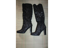 Текстильные черные сапоги. Иск. велюр, иск. мех. Размеры 37,38,39. Каблук 8 см. Высота сапога от подошвы до верха 55 см. 700 руб